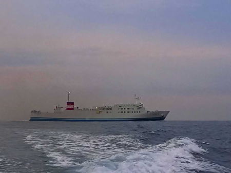 釣りの途中には豪華客船や白波を蹴立てて大急ぎでどこかに向かう海上保安庁の高速船にも遭遇、