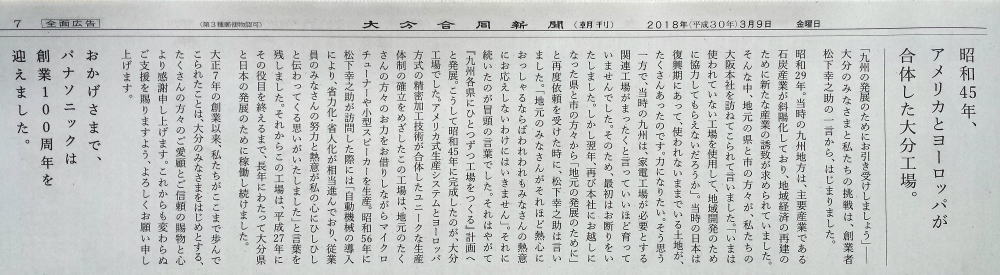 新聞記事       大分合同新聞、毎日新聞より抜粋(2018.3.9)