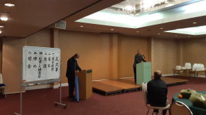 その後、下村新副会長からの来賓挨拶の挨拶を頂き、引き続き千住幹事から議案書に