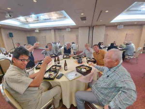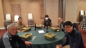 開催できるような場所も無くなってしまい、ホテル懇親会場に別途手配したお弁当とお酒を持ち込んでの