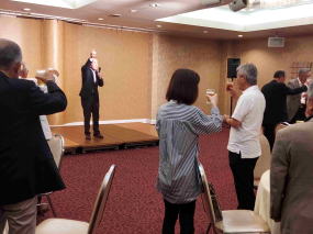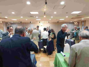 わたり話をして頂いた後、会場を移し、塚崎幹事の挨拶、金子会長の乾杯の音頭にて懇親会を開始しました。