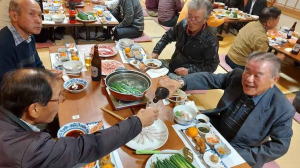 もまだ仕事をされている方も多く、現在の仕事や趣味、健康の話から昔話など、お酒が進むにつれ皆さん饒舌に!
