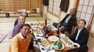 4月30日、今年も大阪から旧情報機器メンバー3名(松愛会会員)を迎え、日中は別府GCでGOLFの後、