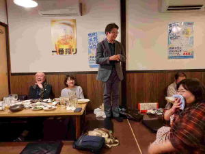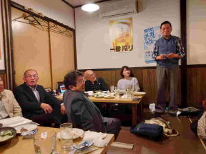 18時からは場所を移し、懇親会を開催、日浦幹事の開会挨拶、武谷さんによる乾杯発声の後、懇親会をスタート