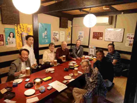 5月1日、旧情報機器メンバー2名を迎え11名で懇親会を開催しました。本来であれば日中は別府での