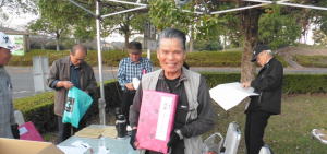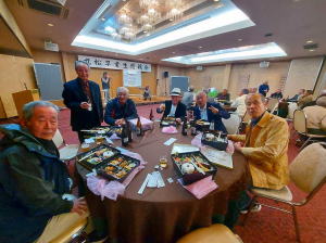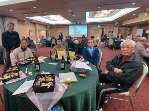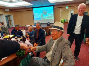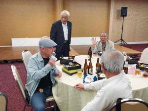 途中、新入会員の高橋修さんの自己紹介や、グラウンドゴルフの成績発表、築地さん作成の「九州松下