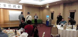 スライド形式で映し出し、皆さん懐かしそうに眺め入っていました。懇親の合間には日浦幹事から今年度の