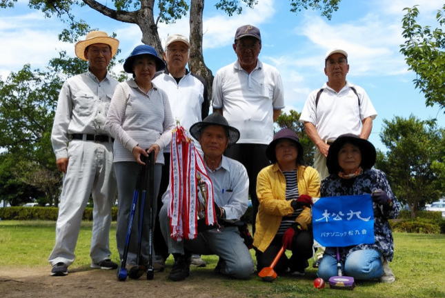 6/25(日)曇天の下はちまんの郷グラウンドゴルフ場にて定例会を開催しました。