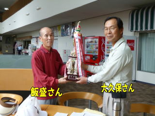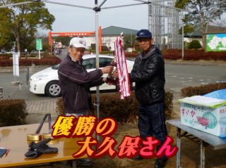 大久保洋さんにトロフィーが渡され、それぞれ賞品と参加賞をいただき