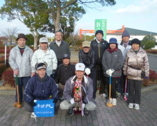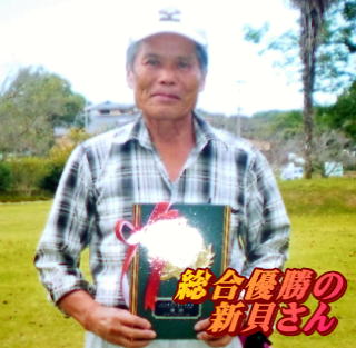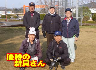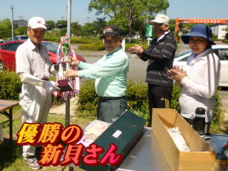 初参加の坂田鹿雄さん。2位は新貝義郎さん。3位はハンディが効き少し