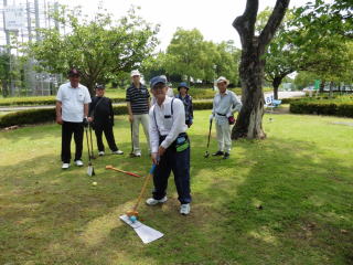 名称変更したグラウンド・ゴルフ競技場で、8名参加の下、競技を行いました。