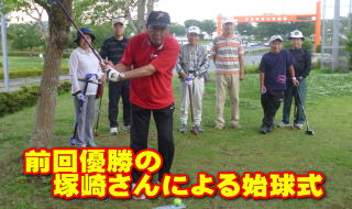前回優勝の塚崎高治さんの始球式に始まり、3コース、24ゴールに