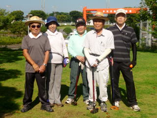ゴルフ競技場で参加者8名で、9時に競技スタート。